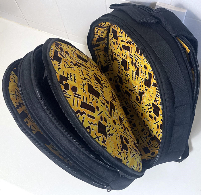 A titre d'exemple, il faut compter environ CHF 150.- / 150€ pour une sacoche de tambour d'environ 50cm de diamètre, avec 2 poches devant et une poche derrière pour y loger une éventuelle plaque de protection (non fournie - pour les voyageurs de l'extrême!)